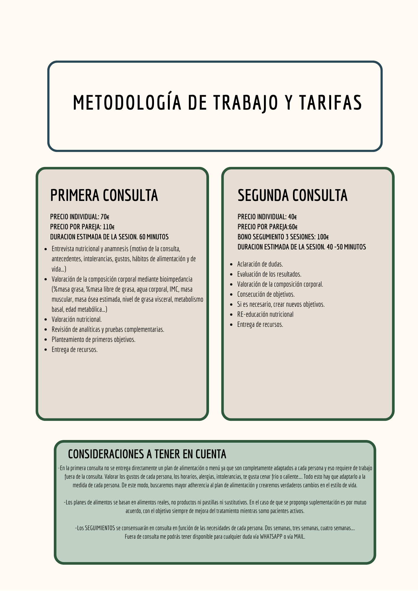 Aprenderás a comer con sentido y flexibilidad, aclarar falsos mitos y creencias, entender las necesidades del cuerpo y el origen de muchos síntomas, herramientas que te ayuden a modificar hábitos o crear un menú ajustado a tus necesidades.